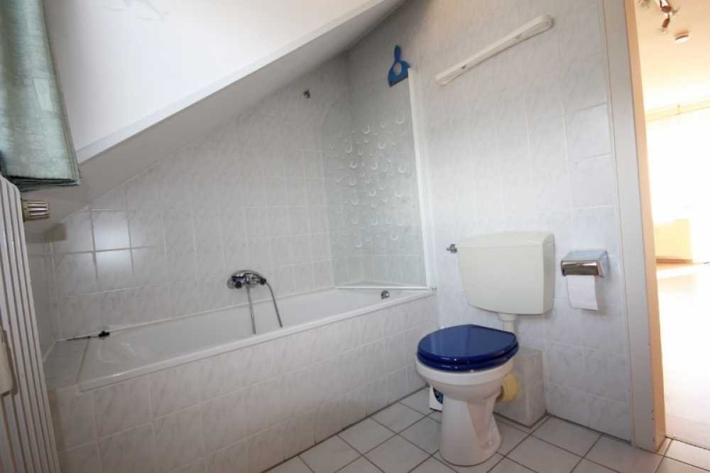 Im 1. Obergeschoss sowie im ausgebauten Dachgeschoss befinden sich angrenzend an das große Schlafzimmer mit Balkon jeweils ein Duschbad. Ferner gibt es auf diesen Etagen ebenfalls eine Küche und einen geräumigen Wohn-Essbereich. Beide Wohnung haben eine Wohnfläche von ca. 60 m². Die Dachgeschosswohnung verfügt über einen zusätzlichen Abstellraum.
